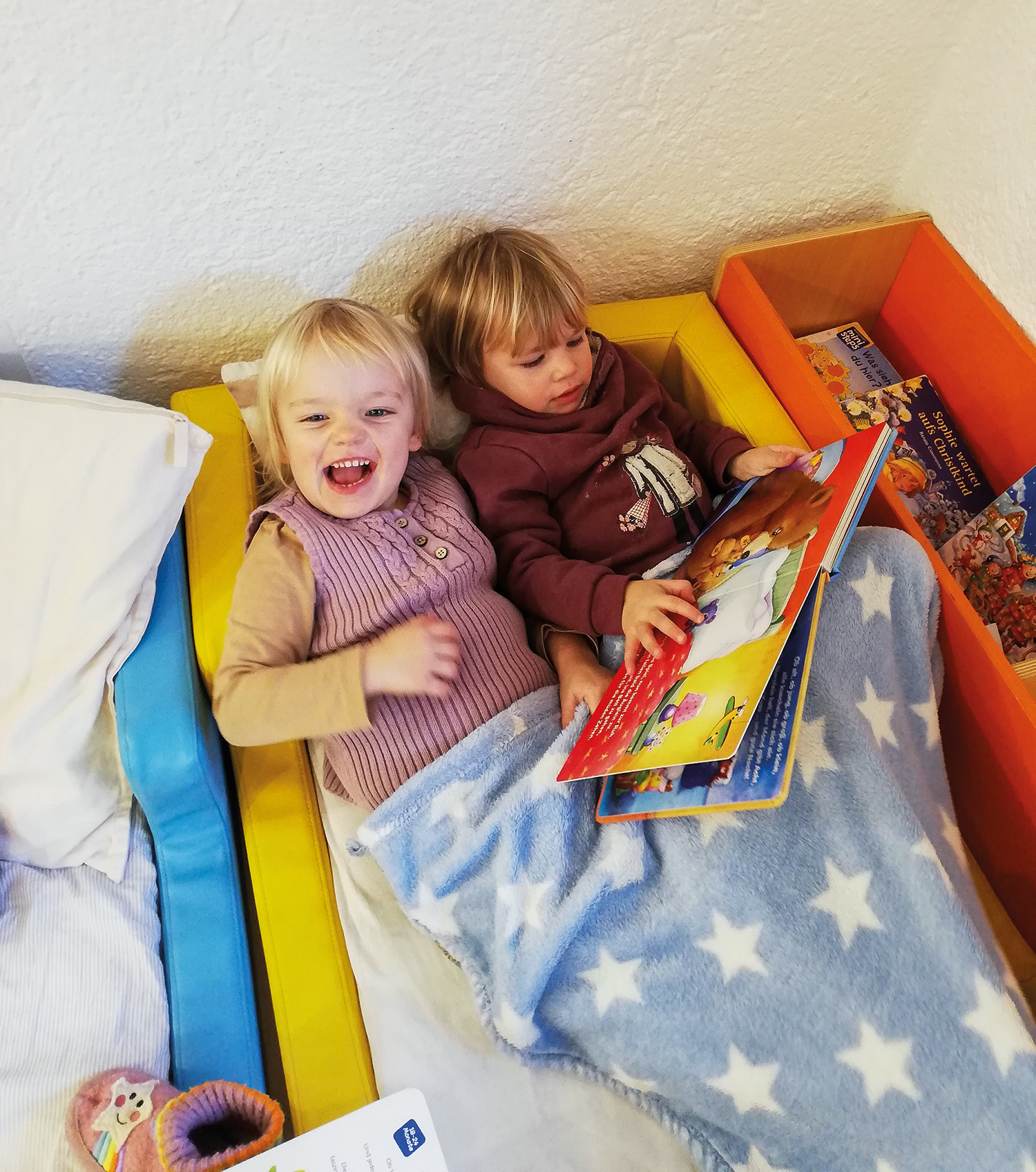 Neben den kreativen Aktivitäten blieb bewusst viel Zeit für ruhige und geborgene Momente. Beim gemeinsamen Kuscheln und Vorlesen sowie beim Experimentieren und Erforschen konnten die Kinder ihren Interessen nachgehen und Neues entdecken. Diese Mischung aus Aktivität und Ruhe machte die letzten Wochen vor der zweiwöchigen Schließ- und Ferienzeit besonders wertvoll.