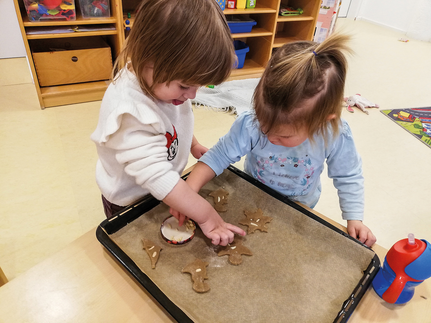 Die letzte Zeit in unserer Krabbelstube war von einer besonders stimmungsvollen und gemütlichen Atmosphäre geprägt. In der Vorweihnachtszeit nutzten die Kinder die gemeinsamen Tage intensiv, um mit großer Begeisterung Kekse zu backen und kreativ zu basteln. Mit viel Freude, Neugier und kleinen, fleißigen Händen entstanden dabei schöne Werke, die das Zuhause der Kinder zusätzlich verschönerten.