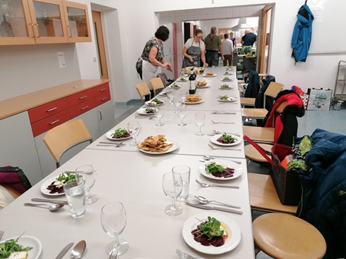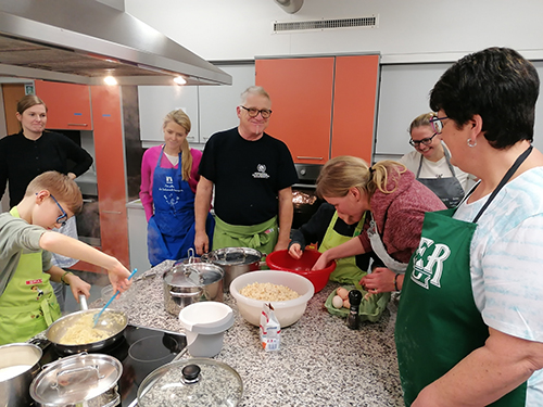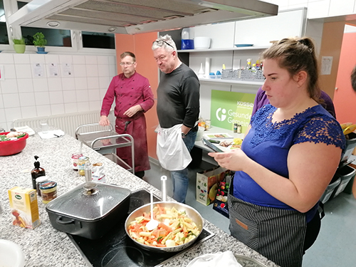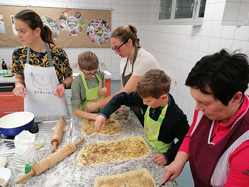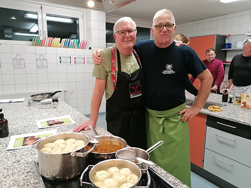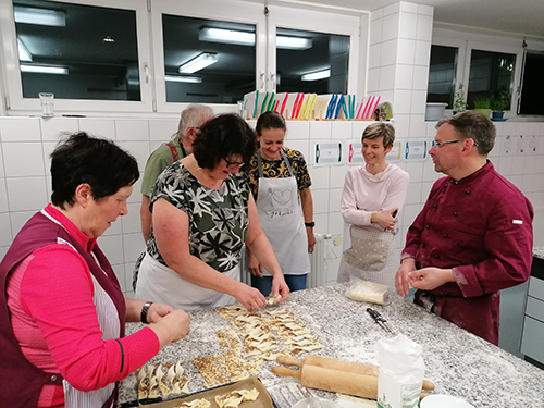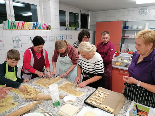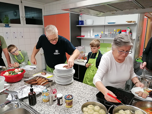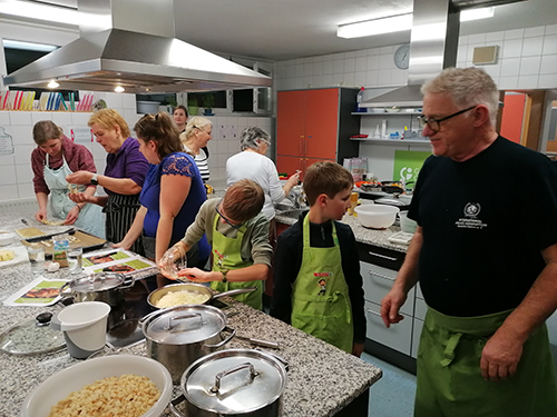 Rohnen, Sellerie, Karotten, Pastinaken, Fenchel und Rotkraut waren die kulinarischen Stars des Kochkurses „Winterküche“, veranstaltet von der „Gesunden Gemeinde“. Das Wintergemüse wurde zum einen neu in Szene gesetzt, zum anderen traditionell zubereitet. Manfred Schwaiger zauberte mit den 18 Teilnehmern ein äußerst schmackhaftes Menü, das durch herzhafte Blätterteigstangerl als Suppen- und Vorspeisenbeilage ergänzt wurde. Bäckermeister Richard Leitner zauberte dafür ein ganz spezielles Rezept aus der Schublade und begeisterte die Hobbyköche. Dass Kochen quer durch alle Altersgruppen angesagt ist, zeigte die Teilnehmervielfalt – von Kindern bis hin zu Senioren war alles vertreten. „Das Team der Gesunden Gemeinde dankt Manfred und Richard sehr herzlich für ihren ehrenamtlichen Einsatz“, so Referatsleiter Hans-Peter Schwentner.
